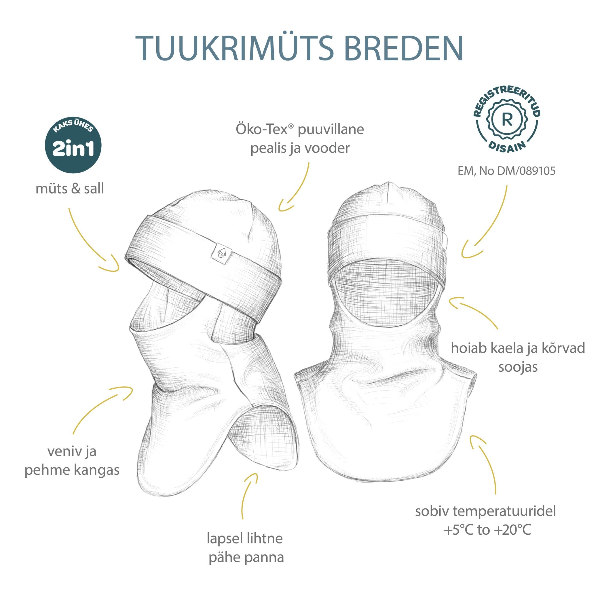 • 2in1: müts ja sall ühes tootes
