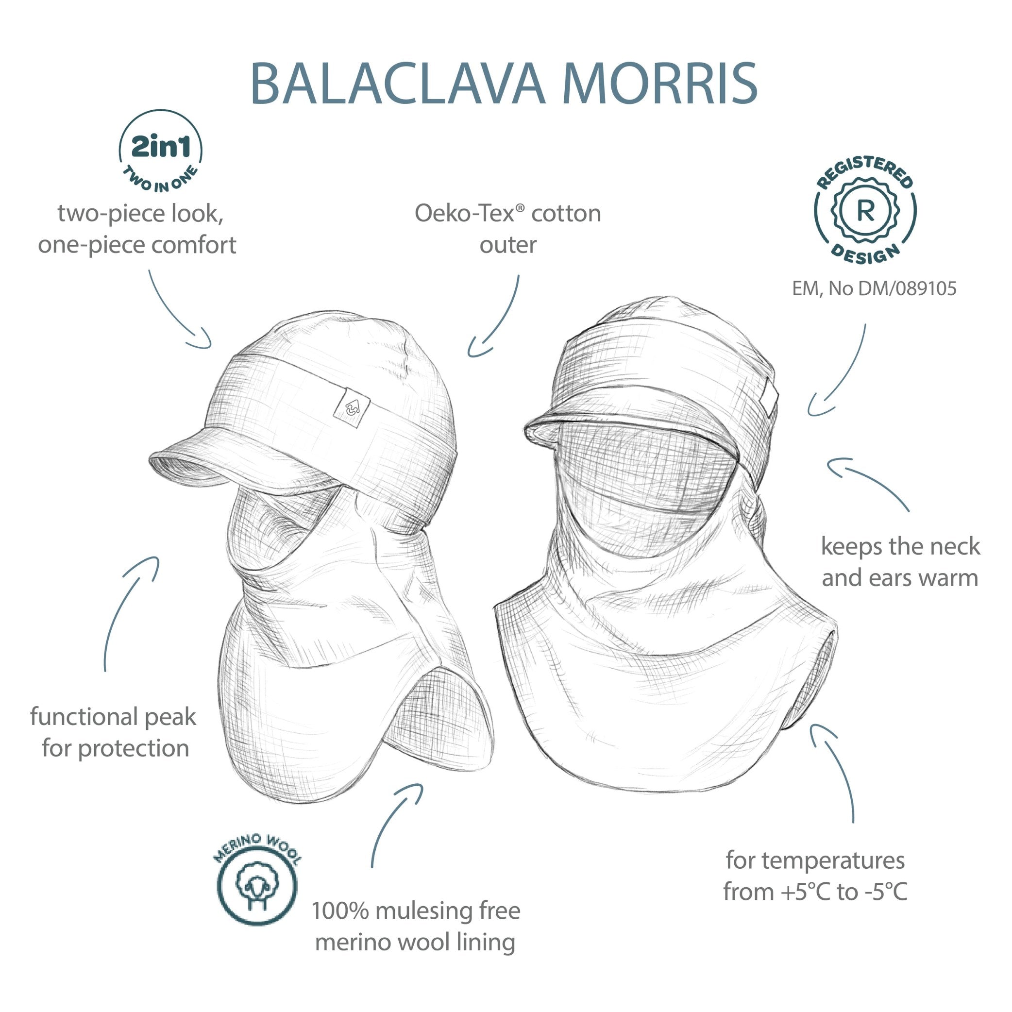 Balaclava MORRIS is thoughtfully designed for days that call for both warmth and practicality — combining a 100% mulesing-free merino wool lining with a flexible functional visor for added comfort and shade outdoors. It’s a warm, breathable and easy-to-wear choice for active everyday use in cooler weather.